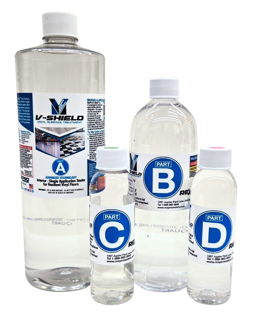 RexShield V-Shield is a 3-component mix with a flow agent additive. V-Shield is a single application, silicon-ceramic coating that forms a continuous barrier across interior vinyl floors. This barrier provides maximum protection, prohibits microbial growth, resists staining, and the effects of harsh chemicals. The results provide a long lasting, glossy shine on the treated surface for up to 3-5 years which eliminates the need for continuous waxing. RexShield V-Shield can be used on Vinyl Composite Tile (VCT), Luxury Vinyl Tile (LVT), Quartz Vinyl Tile (QVT), Sheet Vinyl, Welded Seam Vinyl, and Linoleum! It has a 7-day pot life once catalyzed.